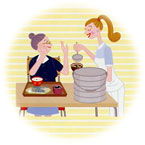 | 地元で収穫した新鮮な旬の食材を使用した、和食中心の食事を提供します。専属の栄養士によりバランスのとれた飽きのこない献立の食事を、他の利用者と一緒に食べることで食生活が一層楽しくなります。 |